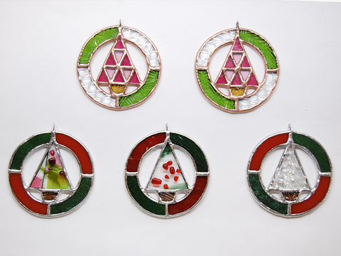 上段のピース数の多いツリーをデザインされていたのですが、ガラス次第で、これは1ピースでも可愛くなるかも…と作ったのが下段。