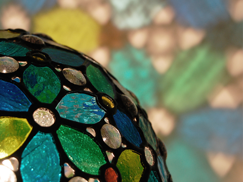 置いて撮ったので、実物はもう少し透明感があって虹色に光るガラスも入っています。
