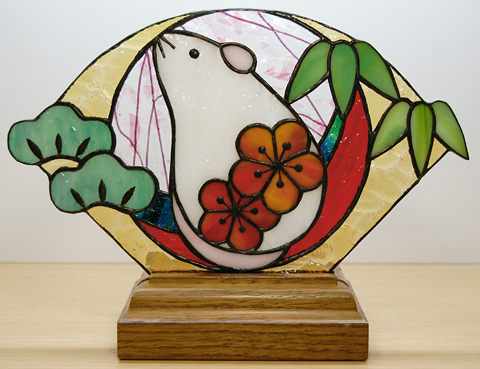パールに輝くねずみさんも、虹色に輝く透明のガラスも、赤い梅も、全てのバランスがよいと感じました。