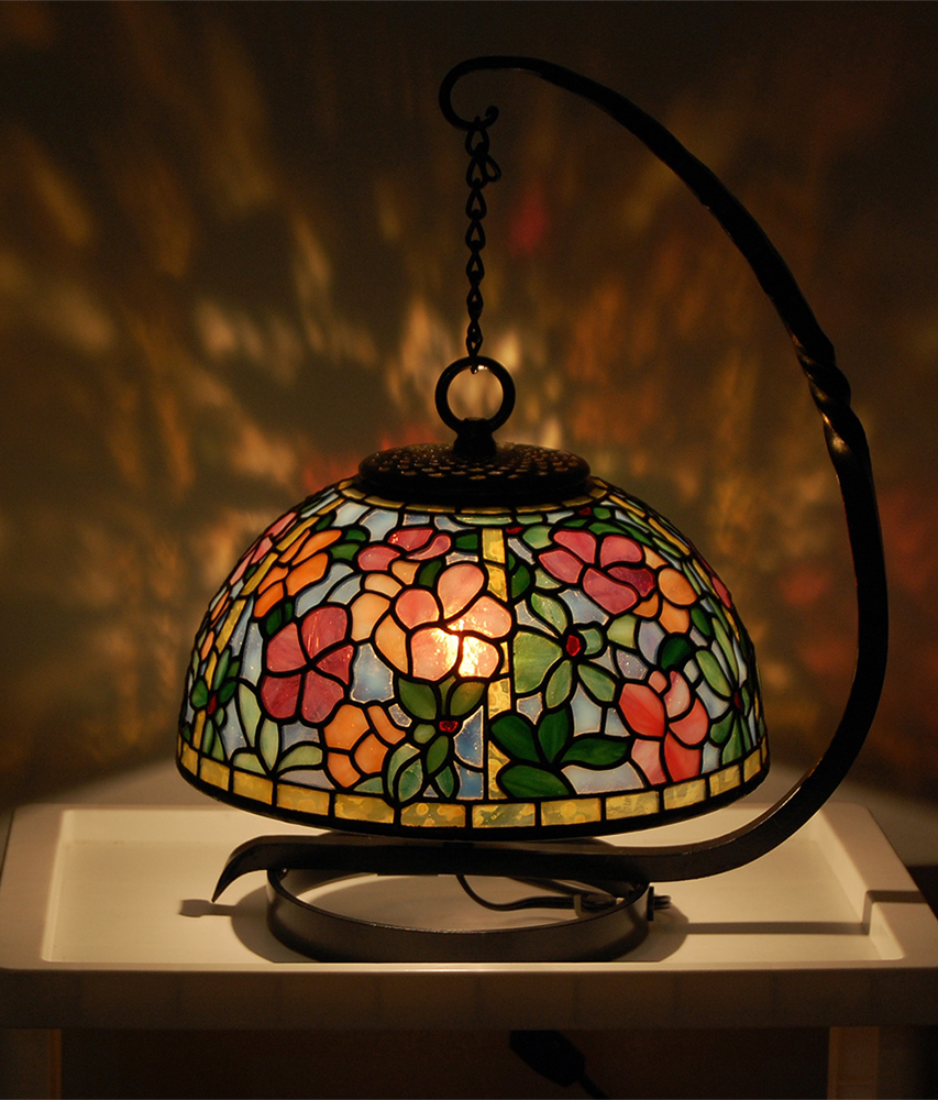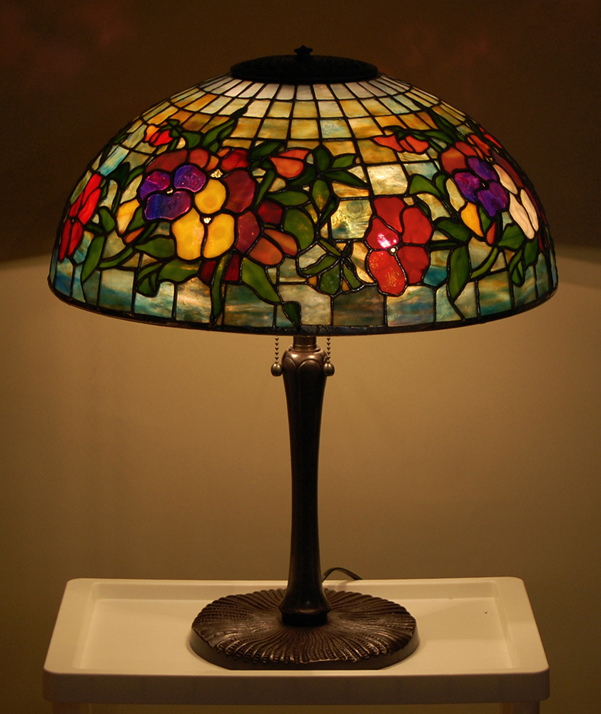Tさんのティファニーランプ、パンジー直径41センチ。写真拡大できます。
