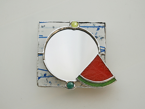 涼しげなガラスをベースに、スイカをつけて、可愛らしく完成です。