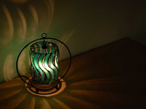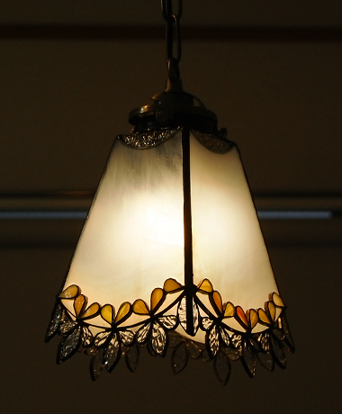 このランプはとても正確さが必要なのですが、ガラス自体に少しウネりがあり、ハンダで組んでいくとき、苦労しましたが、それを感じさせない素晴らしい完成です。