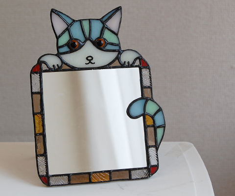 そして、昨日5日(水)、完成したS岡さんの猫のミラー。15cm角ほどです。