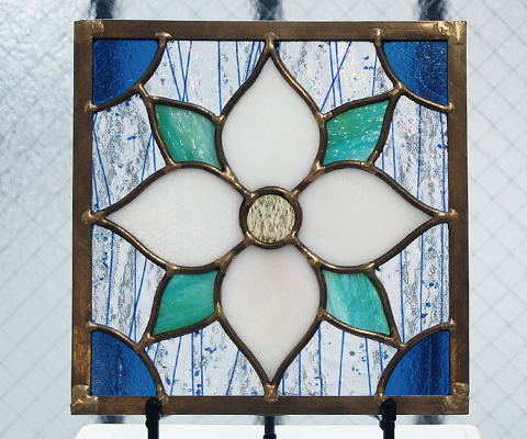 初めてケイム(鉛線)でパネルを組むには少し難しいデザインなのですが、よく頑張られました。