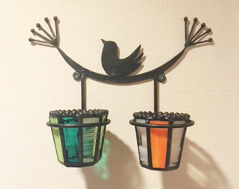 このように壁に取り付けられた可愛い小鳥さんのアイアンのホルダーにセットされます。