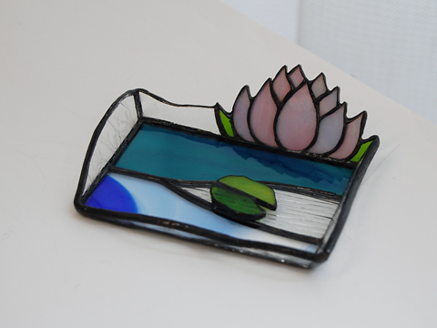 S藤さんの小さな蓮のトレイが完成。名刺サイズくらいでしょうか。