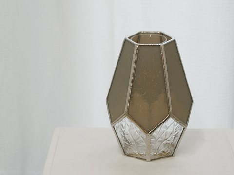 少しだけ透け感のある、ウォームグレーの美しいガラスをメインに、下部はクリアのテクスチャーグラス。