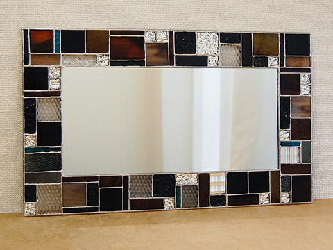 ブラウン、黒、シルバーという渋い色味をランダムに並べた、とてもオシャレなミラーです。