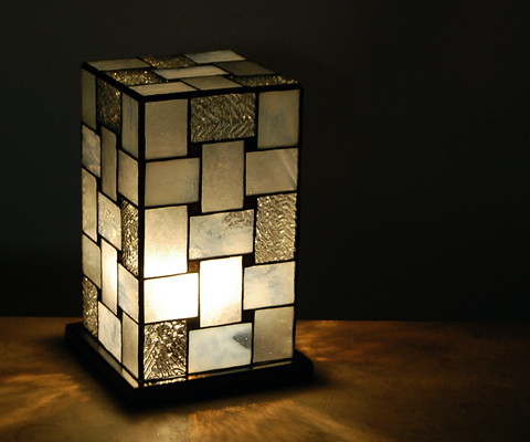 無彩色のガラス3種類で作った上品で美しい、飽きの来ない感じです。