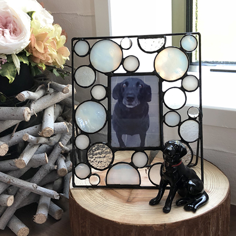 よい表情で写っているものがこのサイズでしかなく、かといって、なかなかこの大きさに合う、お気に入りのフォトフレームがなかったので、ステンドで作ることに。