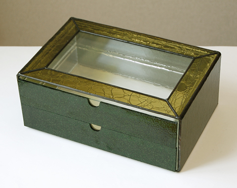 上部は前回と同じ、オリーブ色のアンティークグラスです。