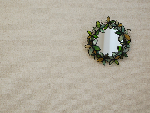 真ん中にミラーはありますが、リースのようにも見えて、壁面の飾りとしても役目を果たしそうです。