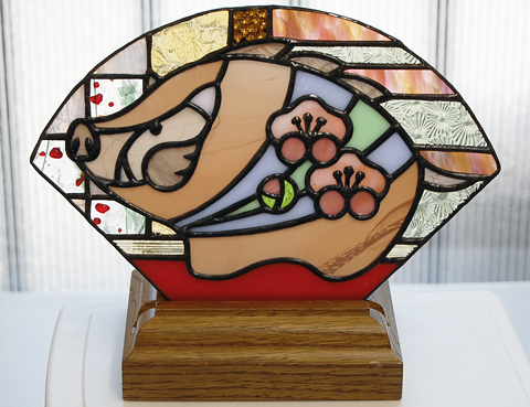 濃淡のあるとっても上品な薄茶色のアンティークガラスをイノシシさんの体に。