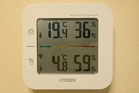 自宅には部屋の中と外の気温と湿度が同時にわかる温湿計があるのですが、私の中の勝手な「冬認定基準」、5℃以下になりましたので、本日12月8日より、冬とします。