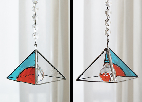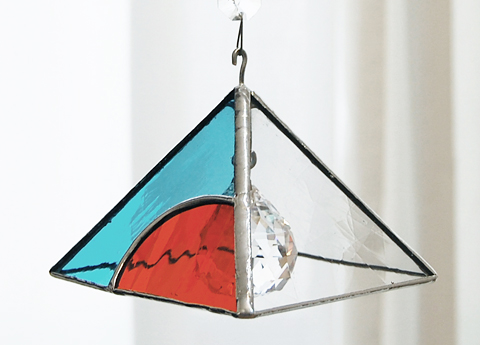 既製品のカットガラスのサンキャッチャーを吊って重ねて使うものです。