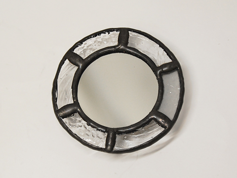端ガラス利用で、透明のテクスチャーのものを数種使った小さなシンプルミラー。