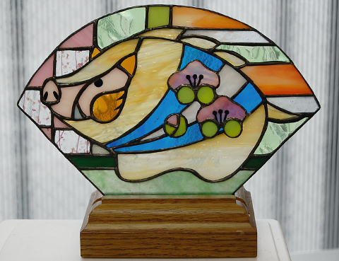 淡い黄色と白のマーブル模様のガラスを使われました。優しい暖かい雰囲気。