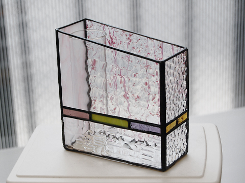 透明の花びらを2枚、ゴールドピンクのアンティークのガラスを1枚忍ばせて。