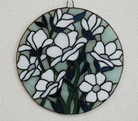I井さんのお花のパネルが完成。直径25cmほど。