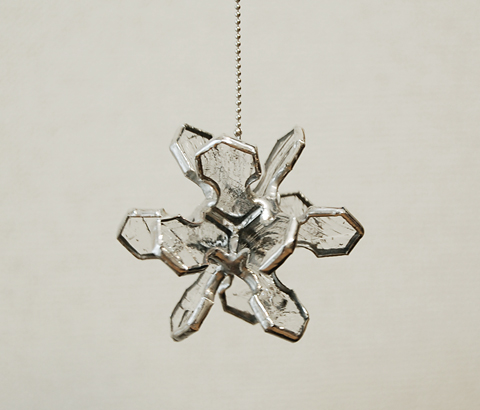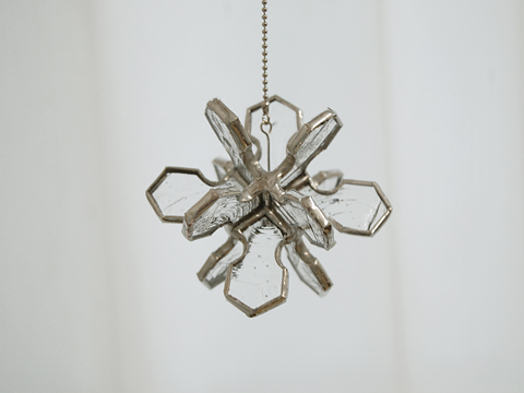 T中さんの立体の雪の結晶サンキャッチャーが完成。5cm立方くらいのサイズです。