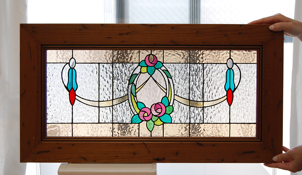 雰囲気のある木枠に入れて、アンティークなステンドパネル風に。