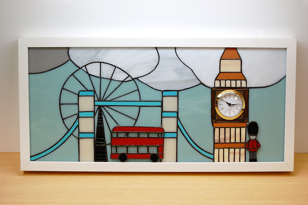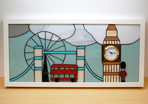 小さな、はめ込み時計をビッグベンに使い、インテリアとしても、時計としての機能も果たす、素晴らしい作品です。