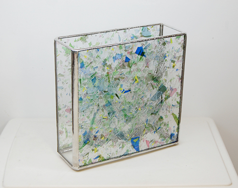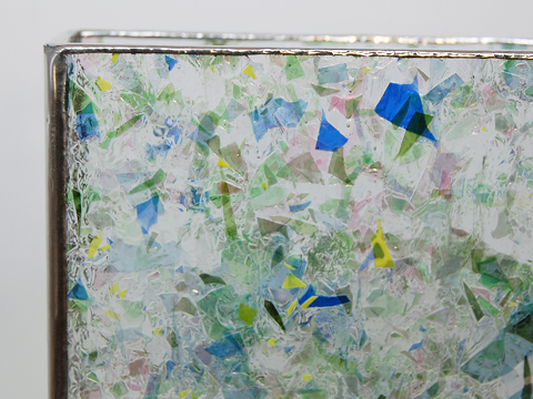 細かい薄いガラス片が溶着してある、とっても可愛らしいガラスを大きく使ったシンプルな作品です。