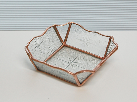 お知り合いから譲り受けた昭和レトロガラスを使った、とっても可愛らしいトレイです。