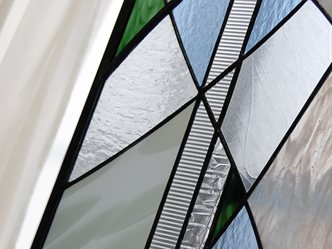 渋いグリーングレーのランバーツのアンティークグラスをメインに作られました。