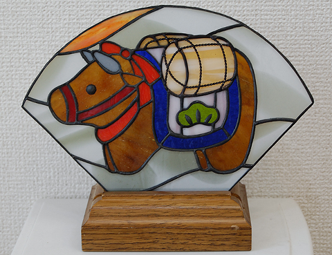 背景の白地にグリーングレーのガラスは、先日のパネルで使ったランバーツのアンティークグラス。