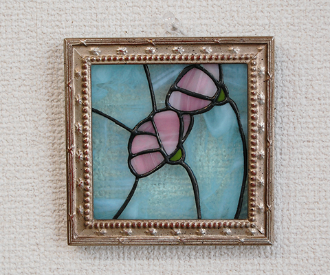 18日(水)に完成していたO内さんの小さなコスモスのパネル。ステンドサイズが10cm角くらいです。