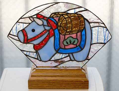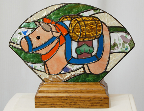 背景は小さな模様の入った透過するガラスを使われて、丑さんとのコントラストがよく出ています。