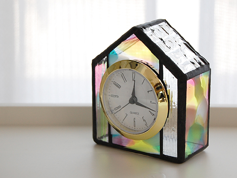 アンティークのガラスは厚みが均一ではないので柄を選ぶか、厚みを選ぶか、みたいなところがあるのですが、上手に位置どりされ、素敵な作品になりました。