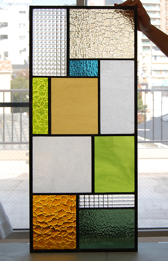 白ベースに淡いピンクと淡いグリーンが絶妙に入っている、とても美しいガラスを主に作られました。