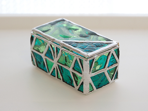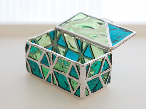 淡いグリーンと、ブルーグリーンのガラスが爽やかな感じでとても素敵。