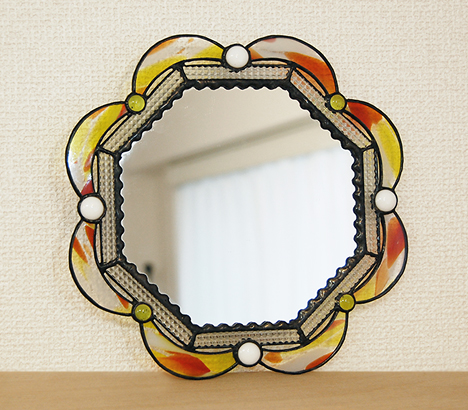 S地さんの壁掛けミラーが完成。直径20cmほど。