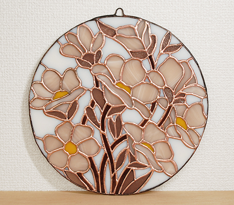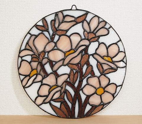 I井さんのお花のパネルが完成。直径25cmほど。