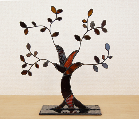 あえて色味はいれず、茶色のガラス数種のみで。