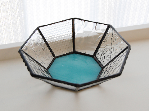 水色のガラスを底面に、周りは透明のテクスチャーガラス数種で。