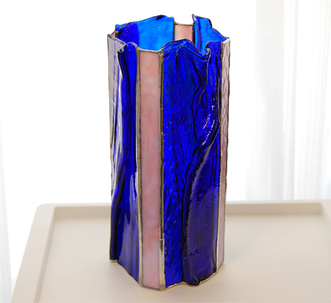 とても濃いコバルトブルーのガラスはドレパリーという深いヒダの入った特殊なもの。